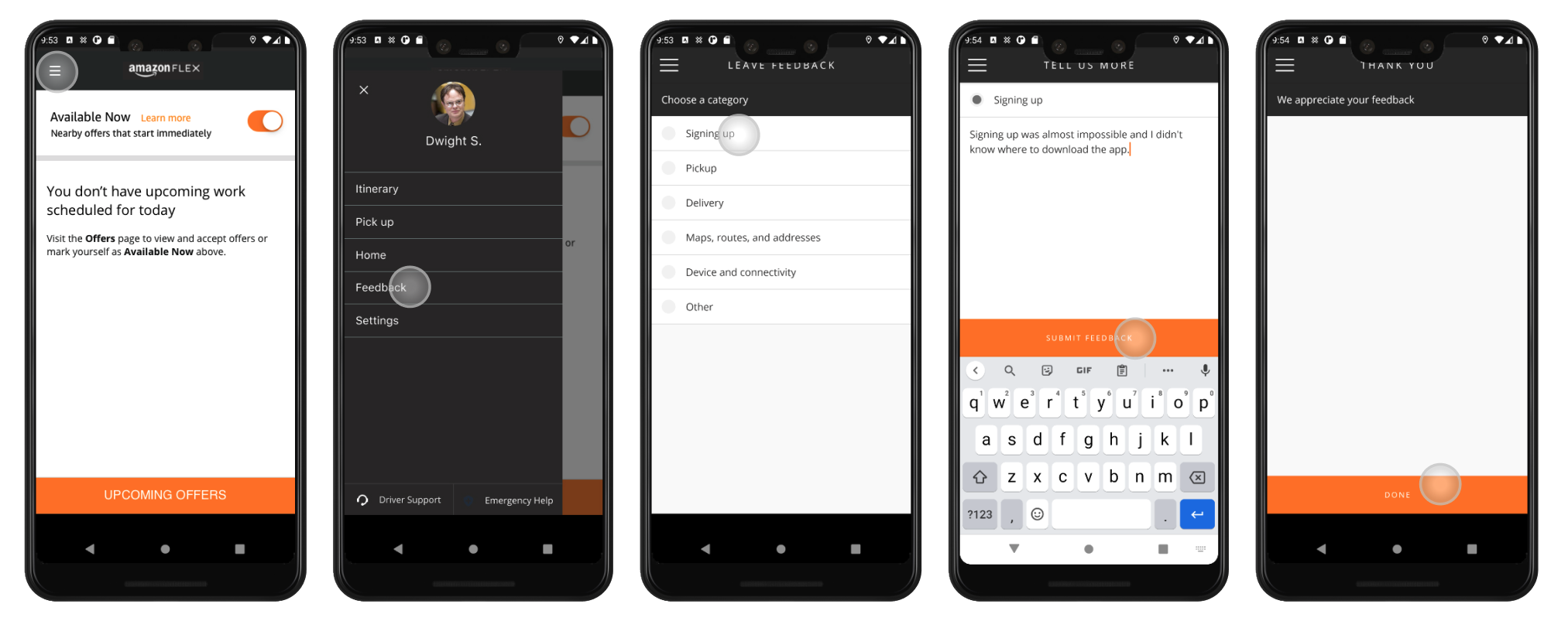 The Amazon Flex app is the mobile app used by delivery drivers worldwide to deliver Amazon.com packages. I was tasked to create a new platform to collect contextual and structured feedback from drivers—enabling internal teams to quickly resolve top driver pain points.