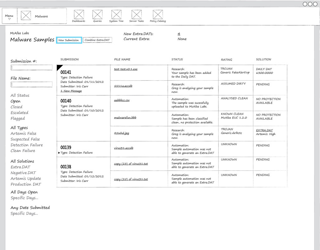 Following research and analysis of current workflows (see Phase 1), we began brainstorming to re-image the entire sample submission process. We knew it needed to be a single, unified solution powerful enough to manage all threat types and flexible enough to allow submission from the endpoint. We new it needed to be integrated into the existing tools customers used today and fit into their current process flows. And perhaps most importantly, it needed to provide transparency into the status of the threat resolution and increase time to protection.